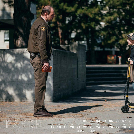The calendar is available in A3 format and printed on beautiful paper. The best thing about it is that we supply it with clips. This means you can use the individual months and subjects of the calendar separately and hang them up in your home. The dates have also been deliberately kept discreet so that the action of the “Tschugger squadrons” comes into its own.
