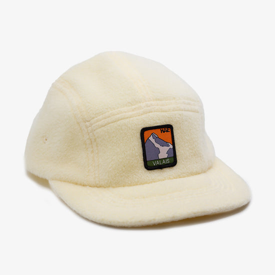 Diese 5-Panel Cap aus weichem Polar Fleece ist gemacht für kalte Tage – leicht, warm und angenehm zu tragen. Das gewebte Patch auf der Front zeigt das Bietschhorn (VS) – ein Stück Heimat zum Mitnehmen. Produziert in der EU, limitiert in Offwhite.